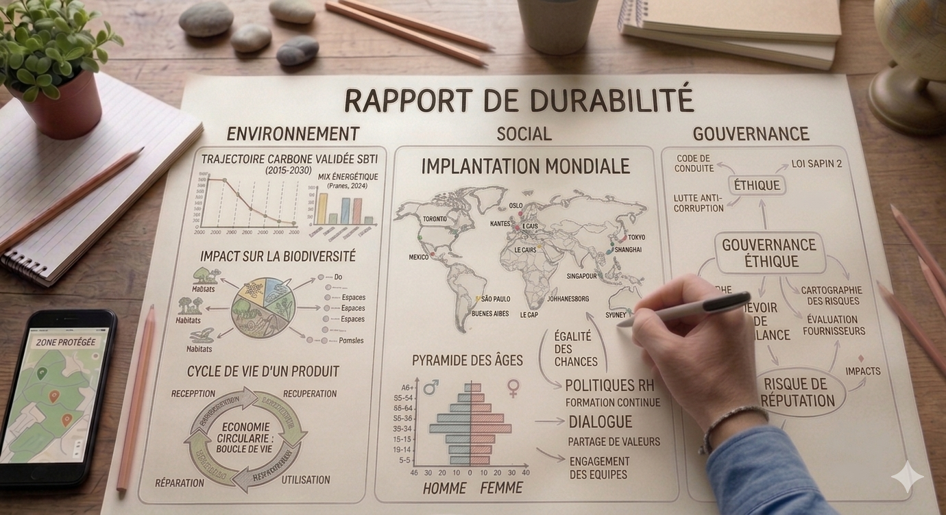 • ESG (Environnement, Social, Gouvernance) : Nous privilégions ce terme à celui de "RSE". Alors que la RSE désigne la démarche de responsabilité globale de l’entreprise, les critères ESG constituent la grille d’analyse utilisée pour mesurer concrètement cette performance. C'est la structure même des rapports : elle couvre l'ensemble des piliers de manière exhaustive et normée.